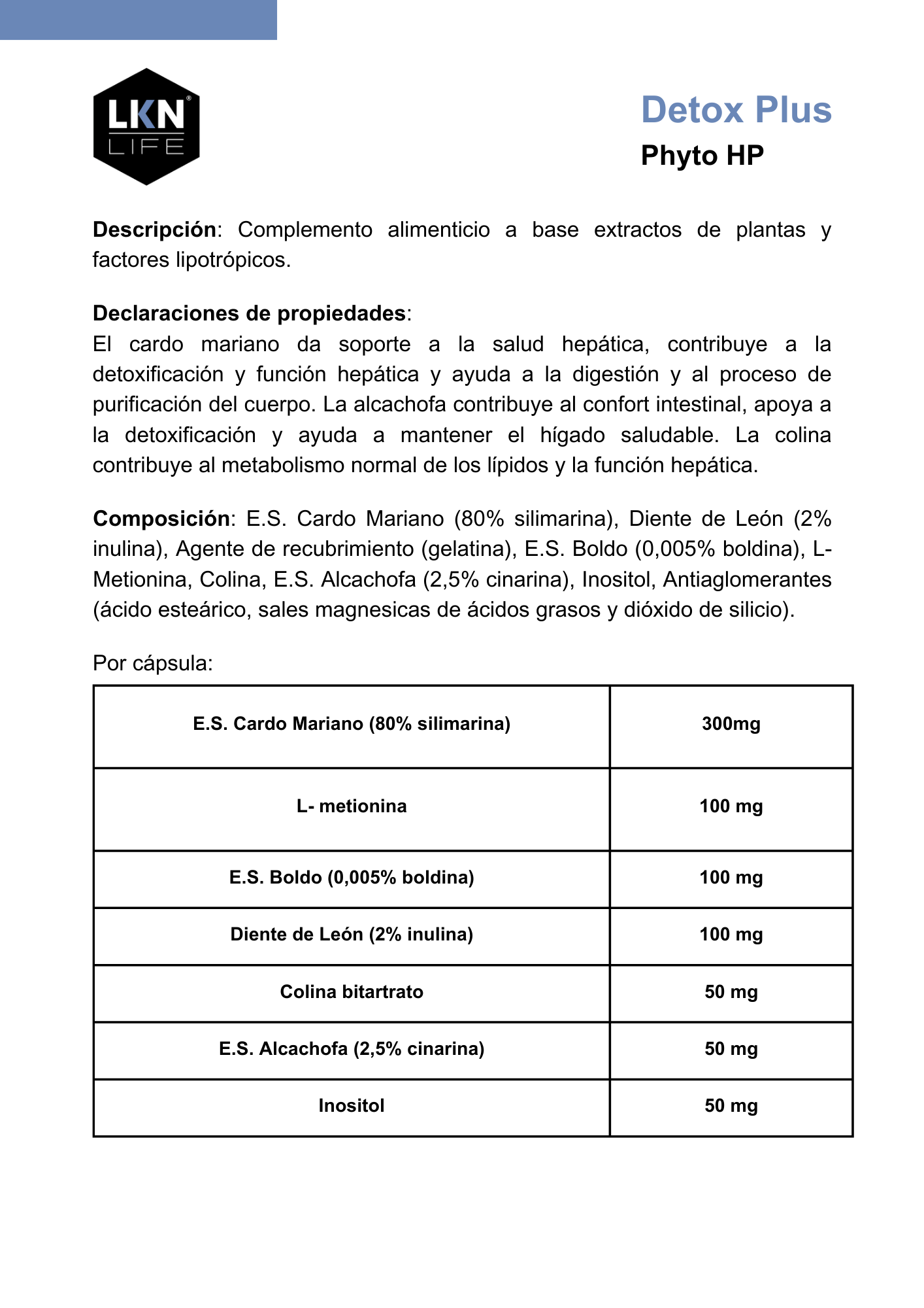 | E.S. Alcachofa (2,5% cinarina) | 50mg |